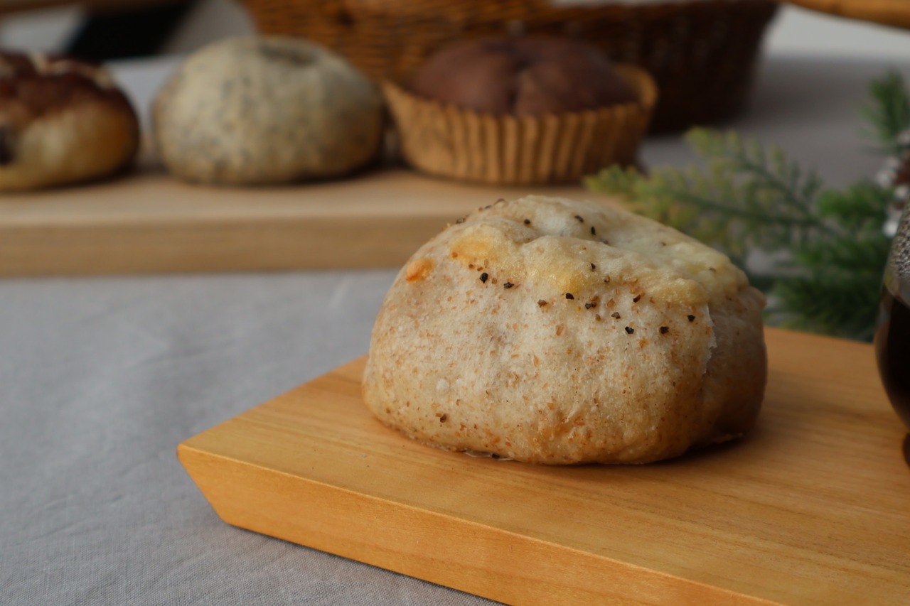 全粒粉生地に無添加ベーコンと北海道産チーズを巻き込みました。