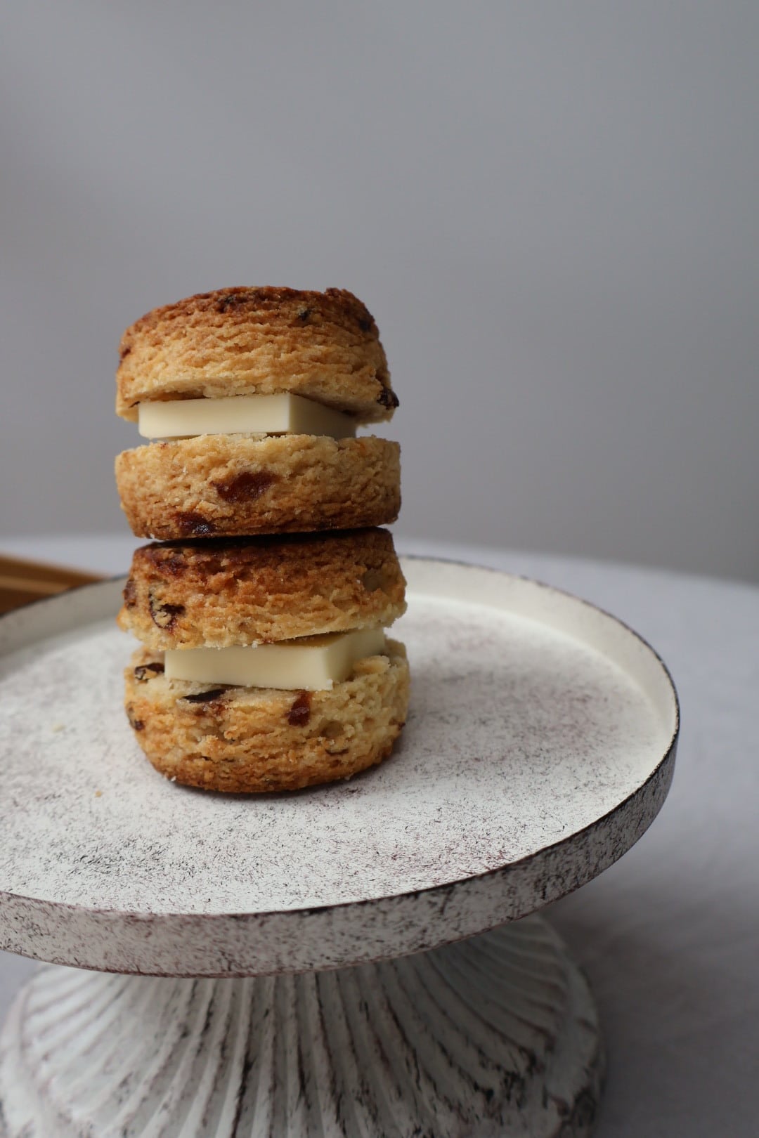 ラム酒漬フルーツをたっぷり混ぜ込んだスコーンに