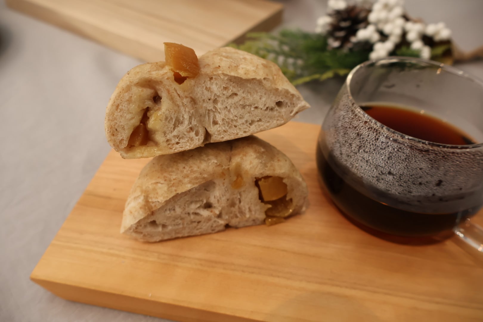 小麦粉(国産)、無添加たくあん(国産)、豆乳マヨネーズ、花見糖、ゲランド塩、ドライイースト(微量)