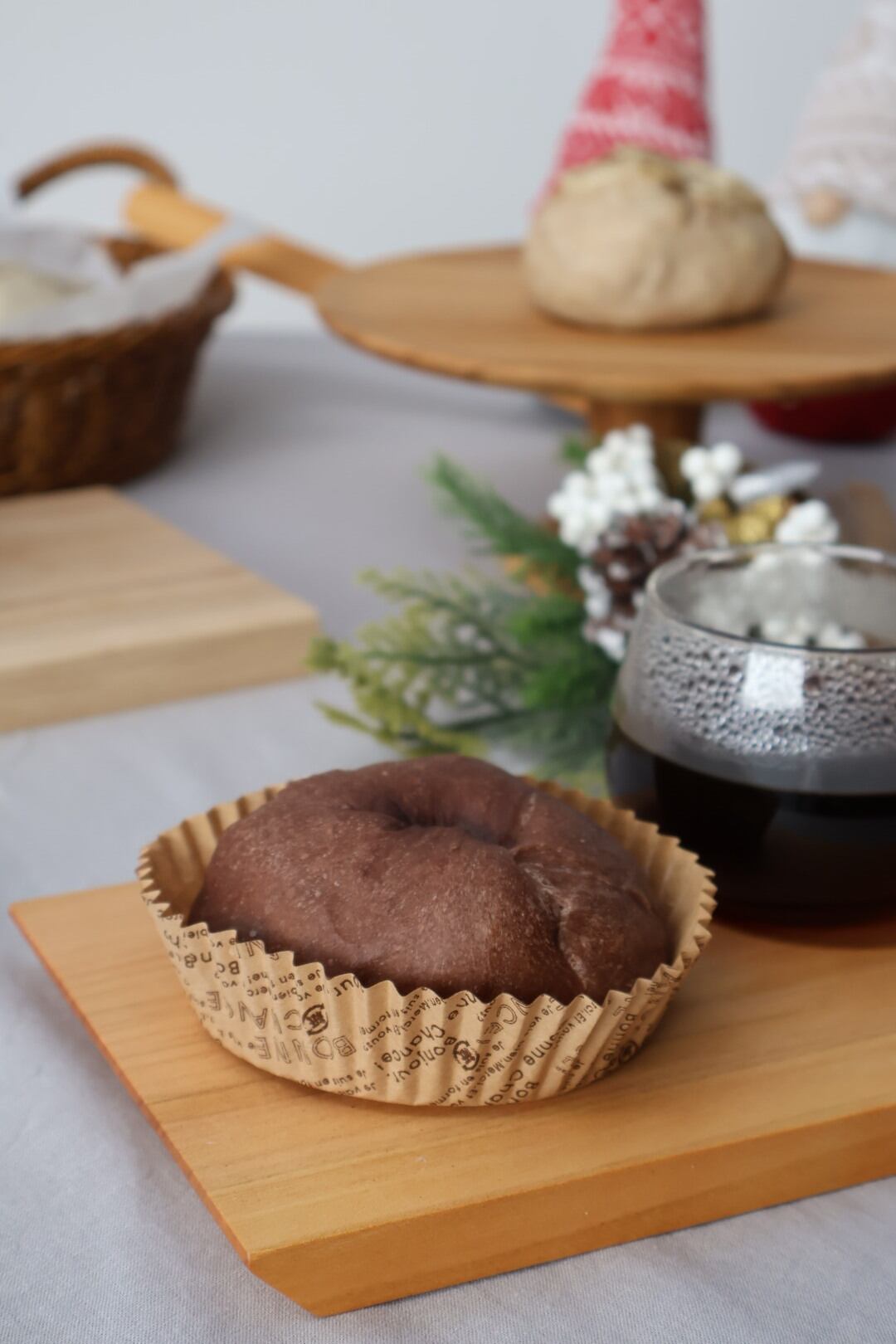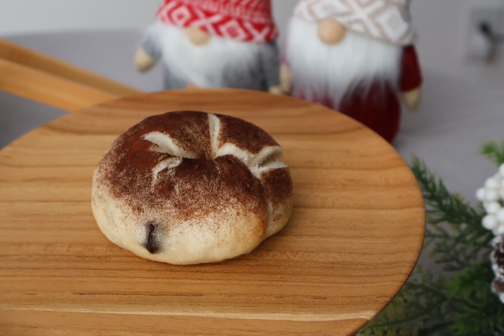 ココア生地に、自家製ガナッシュクリーム(生チョコの様)とこし餡を巻き込みました。