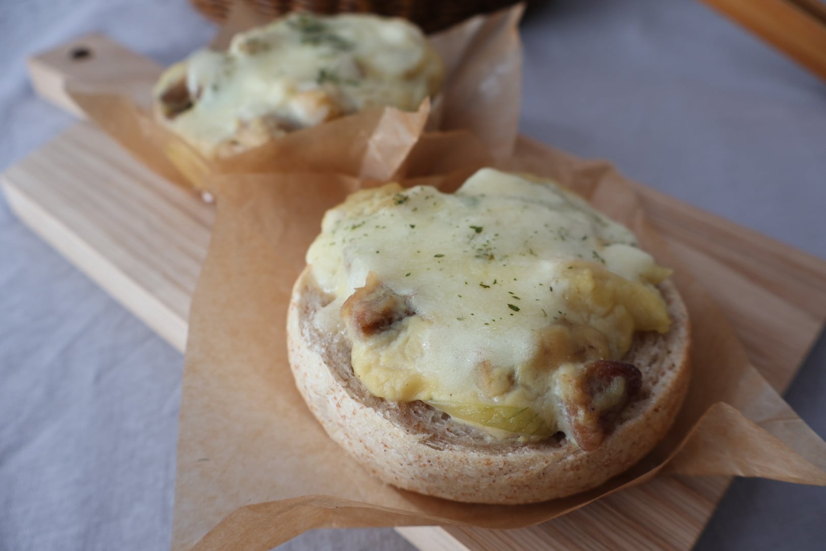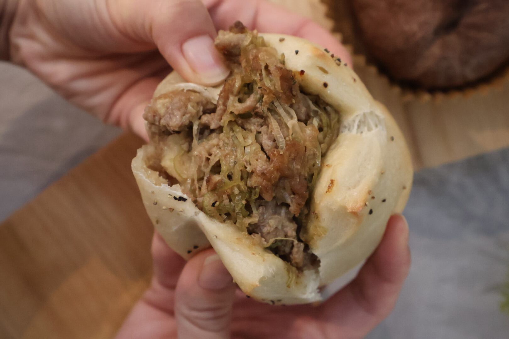 ベーグル生地に岡山県産豚肉、白葱をたっぷり使用した自家製の餡をたっぷり詰め込みました。ごま油の香りが美味しさを引き立てます。